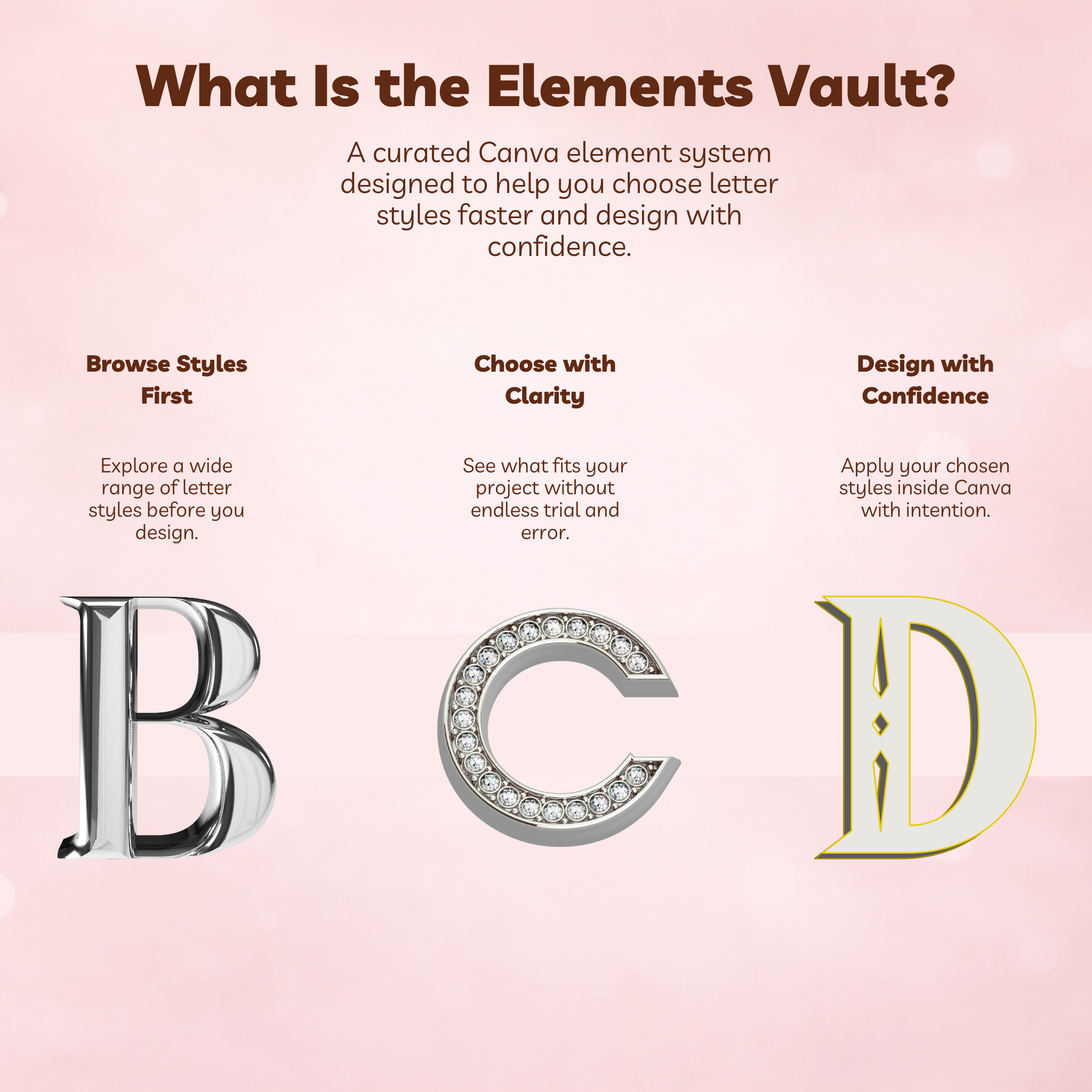 Instead of endlessly scrolling inside Canva or second-guessing your choices, the Vault gives you a clear, visual way to explore letter styles before you commit. This means faster decisions, cleaner designs, and a more enjoyable creative process.